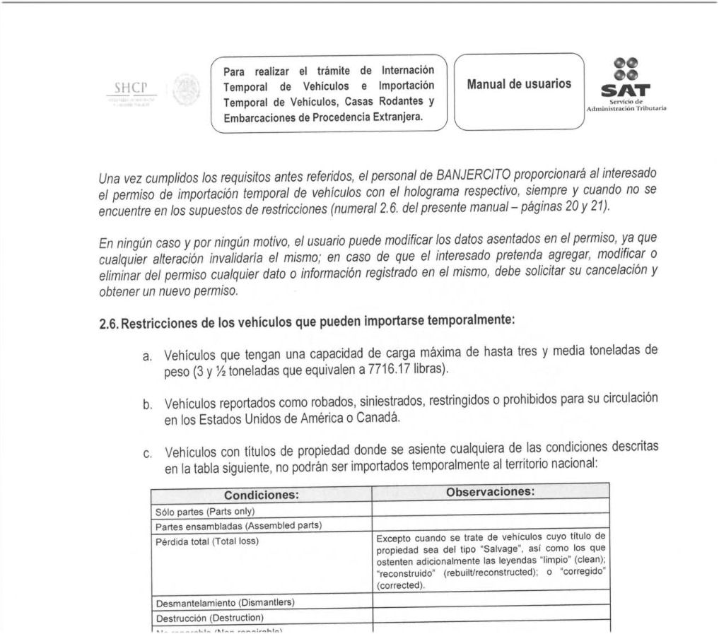 I believe this all boils down to an issue with translation from Spanish into English in Banjercitos documentation. SAT sets the regulations, Banjercito applies them.